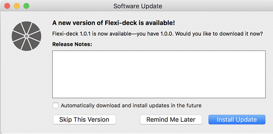 To install, simply drag the Flexi-deck application to the Applications folder.